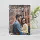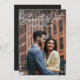 Este elegante aviso de guardar la fecha presenta un texto con estilo retro "guardar la fecha" en blanco en la parte superior de una foto vertical completa junto con un texto personalizado simple. La parte trasera de este moderno aviso de guardar la fecha tiene una franja negra elegante junto con una foto horizontal, espacio para un mensaje personalizado y un código QR para el sitio web de su boda. Este diseño vertical es ideal para una pareja moderna y elegante, y es una excelente manera para que la pareja comprometida comparta información de la boda con amigos y familiares. Encuentre más colores y estilos en la colección de Lea Delaveris Design. También disponible como descarga digital de aviso de guardar la fecha.