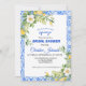 Ella Encontró a su Pareja Ideal La temática de la celebración de la boda de limón es ideal para una boda de verano. La fruta cítrica, que es refrescante y fresca, siempre hace hermosas exhibiciones y refrigerios. La Colección Lemons de Jenny combina limones pintados con estilo con baldosas azules mediterráneas. Las baldosas en este diseño forman un marco azul. Está elevado por un delgado marco dorado.