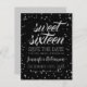 Elegante y moderno diseño "Sweet 16 ( Dieciséis ) Birthday Party" con el motivo de los puntos de confeti Sparkle Purpurina Plata y Gris, y el nombre personalizado y el texto de detalles. Fácil de usar y fácil de personalizar. ¡No te quedes sin el tuyo!