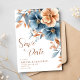 Disfrute del ambiente relajado y las fantásticas instalaciones hacen la estancia inolvidable. Esta invitación moderna y de moda, diseñada para adaptarse a su temática única, combina suaves tonos azules y cálidos de terracota para lograr un equilibrio perfecto entre elegancia y encanto rústico. ¿Preocupado por enviar el derecho a guardar las fechas? Este diseño garantiza que el estilo boda se refleja con gusto, lo que crea el escenario para el gran día, mientras que ofrece a sus invitados una pequeña mirada a la celebración. No dejes que el miedo a perderse en estilo te detenga, personalizar que guardes la fecha ahora y asegúrate de que la visita de tu boda comience con la nota perfecta.