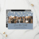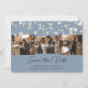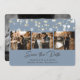 Elegante foto de boda azul polvoriento para guardar la tarjeta de fecha. Nuestra boda ahorra la fecha incluye un collage de fotos de 3 imágenes en un polvoriento fondo azul adornado con luces de cuerdas en el frente y una foto en la parte posterior. Personalice fácilmente este azul polvoriento guarde la tarjeta de fecha con sus fotos y detalles del boda.