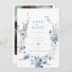 Anuncie su día especial con estilo con nuestra Dusty Blue Floral Spring Greenery Wedding Save the Date! Con suaves tonos azules polvorientos, delicadas flores de acuarela y exuberantes toques verdes, este elegante diseño capta el fresco y romántico espíritu de primavera.