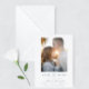 Moderna y elegante, excepto que la tarjeta de fecha presenta un minimalista diseño azul y blanco polvoriento. Personalice los detalles de su boda con la plantilla fácil de editar, que incluye un elegante tipo de letra de guión y un tipo de letra serif elegante. Entonces, reemplace la foto del frente por la suya propia. Echa un vistazo a los objetos que coinciden con la colección "Dusty Blue Modern Elegant".