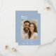 Announce your special day in style with this modern dusty blue Save the Date card. Featuring your favorite photo framed by a minimalist white line border, it perfectly blends timeless elegance with a personal touch. The handwritten script adds a romantic detail, while the clean layout keeps the design contemporary and easy to customize.