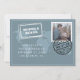 Dusty Blue World Map Destination Wedding Foto de guardar la invitación de fecha
