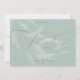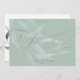 Tipografía para siempre enamorada en una caligrafía de escritura sofisticada - resaltada de una manera que casi parece grabado en relieve. Tipo mínimo único para los nombres y la fecha - el eucalipto blanco y espumoso translucido deja gracia en la parte delantera detrás del texto en un fondo de sabio polvoriento. En la parte posterior hay una versión acuarela de las flores anémonas y hojas a todo color sobre un fondo blanco. Diseño por WhimsicalArtwork™