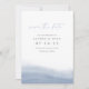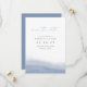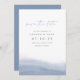 Elegante boda costera, salvo la fecha, presenta un polvoriento degradado de color azul a lo largo del fondo con una grácil curva que evoca el borde y el flujo del mar. Los detalles de su boda aparecen en letras clásicas minimalistas con acentos manuscritos. Use la parte posterior para compartir información adicional con sus invitados.