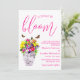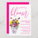 ¡El amor está en flor! Colección de bodas floridos y vibrantes, con un ramo en un jarrón de mármol rodeado de mariposas, y acompañada de una tipografía de escritura fuchsia.