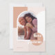 Fotografía moderna y moderna que ahorra el diseño de la tarjeta de fecha. El moderno oro rosa y la paleta de tonos marrones crean un estilo moderno y elegante. "El amor es paciente", emparejado con caligrafía de letras a mano moderna. Diseño geométrico de moda con el marco de la foto arqueada para mostrar tu foto especial. El reverso presenta un diseño geométrico audaz y moderno.
