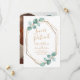 Esta tarjeta plana de postergación botánica del boda presenta un diseño botánico de un marco geométrico falso dorado acentuado por la vegetación de eucalipto pintado a mano con las palabras "Amor es Paciente" en escritura falsa dorada con letras a mano con el mensaje pospuesto debajo para que lo personalizes. La parte trasera de la tarjeta tiene una foto para que usted la personalizar con la suya propia. ¡Mis mejores deseos para su futuro boda! Diseñado por Susan Coffey.