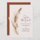 La moderna boda bohemia bohemia natural pampas salva la invitación de la fecha. Impresionante texto de escritura elegante y sobre follaje botánico de tendencia en beige natural contemporáneo, terracota, color negro y verde azulado.