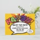 Un divertido, fresco y moderno libro de historietas retro inspirado en el arte pop salva la invitación a la cita que pone el wham, zap, pow en su invitación de citas boda. El reverso presenta un patrón de puntos polka de la historieta que se puede reemplazar con su propia imagen o foto. Diseñado por Thisisnotme©