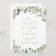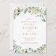 Las tarjetas rusticas para guardar las dátiles presentan hojas de Relieve metalizado de oro falsas, agua eucalipto vegetación botánica y escritura moderna de moda y letra, elegante y romántica, ideal para boda rústico moderno, bodas en el jardín botánico y bodas en el campo boho. Vea todas las piezas coincidentes de la colección.