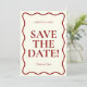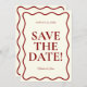 Esta moderna y retro funky Boda minimalista Guardar la plantilla de fecha es genial para usted. Si buscas una boda bonito, elegante y fácil de personalizar Guardar la plantilla de fecha. Una boda alegre y elegante, sencilla y de moda, de marfil rojo negrita, salvando la invitación de fecha. Lo que tiene un rojo profundo mínimo, ahorra la fecha tipografía audaz en un fondo claro y claro dentro de un marco ondulado. Agarra esta elegante boda, ahorra la fecha y haz que tus invitaciones estén realmente comprometidas.