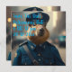 El oficial Capybara: El Protector Educado", un capibara diligente, orgulloso con un uniforme de policía fresco, con una insignia pulida y un gorra bien puesto en la cabeza. El uniforme encaja con firmeza, acentuando sus hombros anchos y peleados y renunciando a un sentido de autoridad y responsabilidad. Con una expresión tranquila pero decidida, el oficial Capybara se mantiene alto, listo para mantener la paz y proteger a la comunidad.