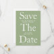 La caligrafía moderna y audaz salva la fecha en verde sabio. Personalízalo con los nombres de la futura novia y del novio, la fecha, la ubicación y añada cualquier color a la parte posterior haciendo clic en el botón para editar el diseño.