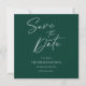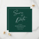 Anuncie su día especial de una manera elegante y elegante con esta tarjeta de Save The Date de estilo verde esmeralda moderno. El diseño minimalista presenta una apariencia simple y elegante con un guión moderno "Save the Date saying" que añade un toque de sofisticación. La paleta de color verde esmeralda crea una moda y un aspecto glamuroso que impresiona a los clientes. Ya sea que esté planeando un boda mínimo, rústico, bohemio o moderno, esta tarjeta de fecha guardará la armonía perfecta con su tema.
