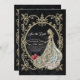 Elegancia en oro y negro. Composición cautivadora que combina elegancia y misterio. Se centra en una mujer con un vestido que fluye, su silueta resplandeciente de oro brillante contra un fondo negro profundo. El cuervo simboliza el misterio y la inteligencia y refuerza la atmósfera mística del diseño. En los alrededores florece una rosa roja, cuyo color vibrante representa pasión y belleza. Una combinación de oscuridad y luz, elegancia y misterio