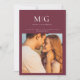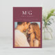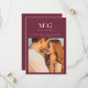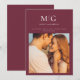 Chic Minimalista | Foto del Monograma Save the Date - es un anuncio/invitación moderno y elegante que incluye una foto de la Novia y el Novio, y el monograma/iniciales de la Novia y el Novio. Perfecto para la Novia y el Novio que aman el estilo minimalista. Se muestra en vino tinto (burgundy), sin embargo, puedes cambiar fácilmente el color de fondo para coordinar con el tema de tu boda. Save the Date es parte de una colección