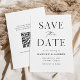 Anuncie sus próximos nupcias con estilo con nuestro elegante y moderno código QR guarde la tarjeta de fecha. El no foto guarda la fecha con las características "Save the Date" en serif negro y fuentes de script con fondo blanco con sutiles especkles negros. Personalice la parte delantera de guardar la tarjeta de fecha agregando sus nombres, fecha de boda, ubicación de boda y otros detalles de boda. El mínimo guardar la tarjeta de fecha se revierte para presentar el código QR de su personalizado con el sitio web boda y el texto personalizado. ¡Perfecto ahorre la fecha tanto para los bodas modernos formales como informales!