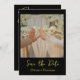 Announce your big day in style with this elegant black and gold Save the Date card. Featuring a modern handwritten script paired with sleek minimalist typography, this design is perfect for couples who love timeless sophistication. Add your favorite photo and customize all text for a personal touch. Ideal for modern, classy, and romantic weddings.