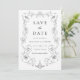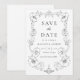 Announce your wedding date with refined confidence using this Elegant Ornate Floral Frame save the date card. The words “Save the Date” appear in a sophisticated pairing of classic serif and graceful calligraphy, setting an elegant tone for your celebration. Your names and wedding details are arranged below within an intricate floral frame inspired by vintage European ornamentation. The balanced composition and timeless black and white palette create a look that feels formal, polished, and enduring. Ideal for estate weddings, historic venues, and couples drawn to traditional yet elevated wedding stationery, this save the date offers a distinguished way to share your upcoming celebration with family and friends.