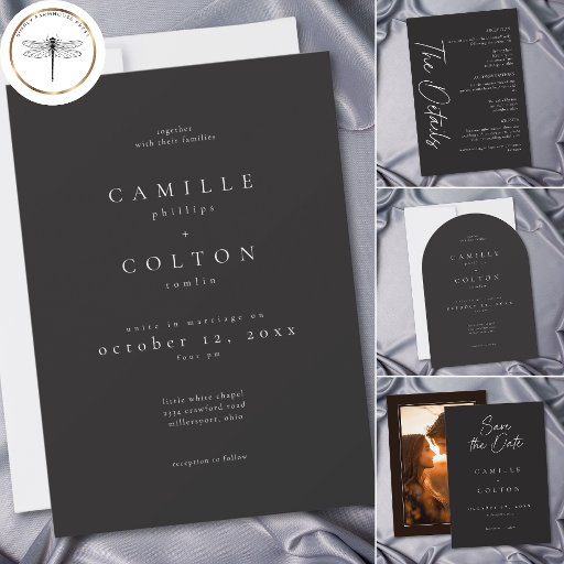 Elegant Charcoal Black Minimalist WeddingDiseñado por Kathe Santillo