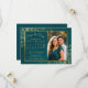 These beautiful save the date cards will let your friends and family know about your upcoming wedding. They feature an elegant dark teal and gold design with your photo in a golden faux foil frame and delicate curls & swirls in the corners. There is space for a customizable calendar of your wedding month with a heart around your special day. Fancy, stylish, posh, and glam, these cards are a wonderful way to start your wedding journey with class and style.