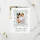 Announce your wedding with this elegant green ornate frame photo save the date, showcasing a hand-drawn antique picture frame around the couple’s vertical engagement photo. “Save the Date” appears in graceful calligraphy, paired with classic serif lettering for the couple’s names, wedding date, and location. The back features a horizontal photo with space below for custom wording and a QR code, making it easy for guests to visit your wedding website. This personalized photo save the date blends natural elegance with modern functionality for a refined wedding announcement.