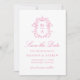 Announce your wedding with romantic charm using this pink monogram save the date card. The front showcases your personalized monogram initials framed by an intricate crest of chinoiserie and baroque motifs, offering a classic and decorative look. Elegant calligraphy introduces “Save the Date,” followed by your wedding details in traditional serif type. On the back, your vertical engagement photo is displayed within a white frame, with room below to include your wedding website and QR code. A pink and white chinoiserie floral pattern with Victorian elegance completes the design, blending softness with timeless sophistication.