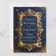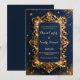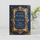 Set a tone of timeless sophistication for your big day with this Elegant Royal Gold & Navy Blue Filigree Save the Date. This design features a stunning, ornate 3D-style gold baroque frame that evokes the grandeur of a vintage ballroom. Set against a deep, midnight navy blue background dusted with shimmering gold bokeh and twinkling stars, it’s the perfect choice for a winter wedding, a black-tie gala, or a fairytale-themed celebration.