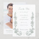 Elevate your special day with this elegant, sage green classic floral design featuring baroque-style scrolls with columns of toile roses and foliage. Includes text fields, QR code and photo template.