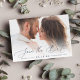 Announce your wedding date in unforgettable style with these simple and elegant photo save the date cards, featuring a full bleed horizontal or landscape oriented photo with "save the date" overlaid in navy blue calligraphy script lettering along the bottom. Your names, wedding date, and wedding location appear beneath in modern lettering. Personalize the back with additional details, such as your wedding website.