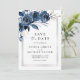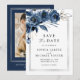 Reserva La Fecha Elegant Script Navy Blue Floral Photo Wedding