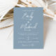 Our simple, elegant dusty blue save the date wedding invitation card with white calligraphy script is perfect for your stylish wedding celebration. A beautiful pairing of white calligraphy font with simple and clean text on a dusty blue background makes for an elevated look to complement your special day. Easy to customize yourself with your own names and wedding event details.
