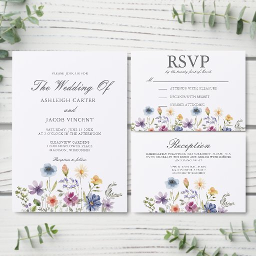 Elegant Watercolor Wildflower Spring WeddingDiseñado por Elisha Seybold
