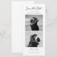 This Save The Date is created for couples who want something simple, modern, and filled with emotion. The tall bookmark layout paired with the clean photo strip brings out the warmth in your pictures, almost like holding a little photo booth reel of your love story. The minimalist black-and-white style keeps the focus on what matters most: the two of you.