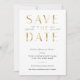 Create stylish event Save the Date cards for your business with this elegant faux gold Company Event Invitation design. This white and gold effect company save the date invite is great to use for a gala night, anniversary company event, dinner & drinks evens and more! Featuring bold gold typography design, this business event Save the Date flyer allows you to edit the event details and background color so you can tailor it to suit your brand and event aesthetic.
