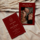 Elegant Wine Red Monogram Script Wedding Photo Save the Date. Personalize this classic and formal wedding save the date card with a favorite engagement or general couple photo, bride and groom initials in a classic monogram style, and future wedding info for family and friends on the back.
