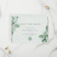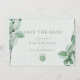 Reserva la fecha para bodas | Elegante acuarela Eucalipto variaciones de verde salado - hojas de eucalipto pintadas a mano arriba y abajo sobre una textura de papel hecha a mano en un tono verde jade muy claro. Fresco y sencillo, pero deliciosamente elegante. Esto forma parte de una colección de suites boda coordinada de diseño diseñada por BarefootBride™. Presenta un sencillo estilo de texto clásico (que puede cambiarse si le gusta hacer clic en Personalizar esta plantilla y, a continuación, en la lista desplegable, haga clic en el personalizar más adelante, aquí puede cambiar el tipo de letra y los colores del texto)