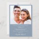 Elegante boda azul polvoriento salva la tarjeta de fecha con tu foto en un marco de arco, "guarda la fecha" en un guión blanco de moda con chispas y tu nombre y fecha de boda unidos con un corazón. En el reverso, agregue una foto adicional, personalice los detalles de su boda y agregue sus nombres en un guión tipo firma.