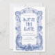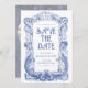 Reserva La Fecha Elegante Boda Barroca Floral de Columna Azul