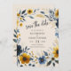 Este elegante Wildflowers Beige Wedding Save the Date presenta hermosas flores en tipografía moderna azul y amarilla, y está completamente personalizable con tus nombres, detalles bodas y un código QR para tu sitio web boda. Este artículo se coordina con la suite Boda beige elegante de flor azul amarillo. #wildflowWedding #blueWedding #yellowWedda #goldWeddWedding #formalWedding #elegantWedding #floralWedding