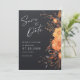 Sorprendente y exquisito, esta elegante boda acuarela floral de otoño negro salva la tarjeta de fecha es ideal para parejas que prefieren una combinación atemporal de estética contemporánea y encanto tradicional. Inspirándose en los cálidos y acogedores colores de otoño, las impresionantes acuarelas florales floridas floridas en cálidos tonos de terracota y naranja quemado se encuentran en un cautivador fondo negro, que impregnan el romanticismo de la temporada en sus preparaciones bodas. Anuncie a su boda con estilo con esta invitación lujosa y de gama alta, perfectamente adaptada para cualquier celebración íntima o grandiosa. Ideal para cualquier tema de boda, como boda negro, boda en otoño, boda boho, boda rústico o boda de campo. Cambie el tamaño del texto, los colores, los estilos de fuente y la ubicación a su gusto utilizando la herramienta de diseño. Para ver los elementos coincidentes, visite la colección invitaciones de la Boda Floral Negra.