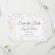 Personalice sus nombres y detalles en una hermosa letra falsa de plata sobre un delicado fondo de confeti arcoiris. Diseñado por Thisisnotme©