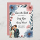 Esta elegante acuarela floral ahorra la invitación de la fecha es perfecta para un boda moderno. El diseño romántico presenta un marco floral de color agua elegante con un ilustracion de novia y novio y una caligrafía negra con un fondo blanco.