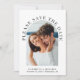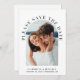 Boda moderna salve la tarjeta de fecha con tu foto en un marco de arco rodeado por "Please Save The Date" en texto elegante. Bajo la foto, agregue sus nombres, fecha de boda y ubicación. En el reverso, personalice los detalles de guardar la fecha en una tipografía simple.