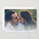 Esto salva nuestra tarjeta de boda de citas comienza con la foto de su pareja. Guardar nuestra fecha se escribe abajo en una elegante foto de guión. Dos líneas de texto le permiten personalizar su solicitud. Una superposición transparente especial garantiza que podrá ver el texto, independientemente de los colores de la fotografía. Hay dos líneas de texto adicionales en la reserva de la fecha de vuelta que puede personalizar.