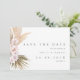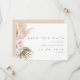 Una boda elegante y moderna salva la fecha con un arreglo lateral de la hierba de las piamas de color agua y las orquídeas. Personalice sus detalles en un diseño moderno.
