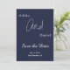 Esta elegante invitación a la boda azul marino es perfecta para un boda moderno. el diseño es sencillo, con una elegante caligrafía blanca sobre un fondo azul.